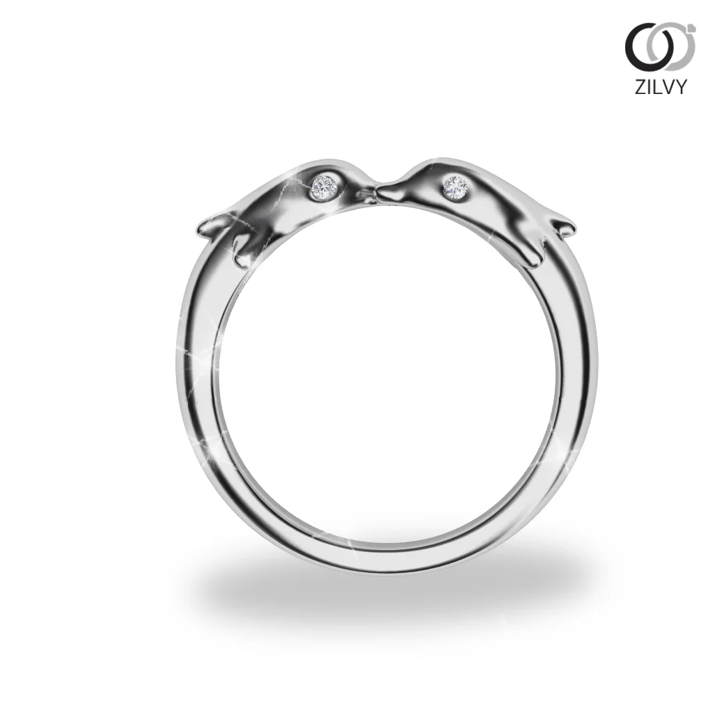 แหวน "คู่รักนิรันดร" จาก ZILVY รังสรรค์ขึ้นด้วยความประณีตบรรจง ตัวเรือนรูปปลาโลมาคู่ สื่อถึงความรักอันเป็นนิรันดร์ ประดับด้วยเพชรน้ำร้อยที่เปล่งประกายเจิดจ้า เหมาะสำหรับเป็นของขวัญแทนใจ หรือสวมใส่ในชีวิตประจำวันเพื่อเพิ่มความหรูหรา
